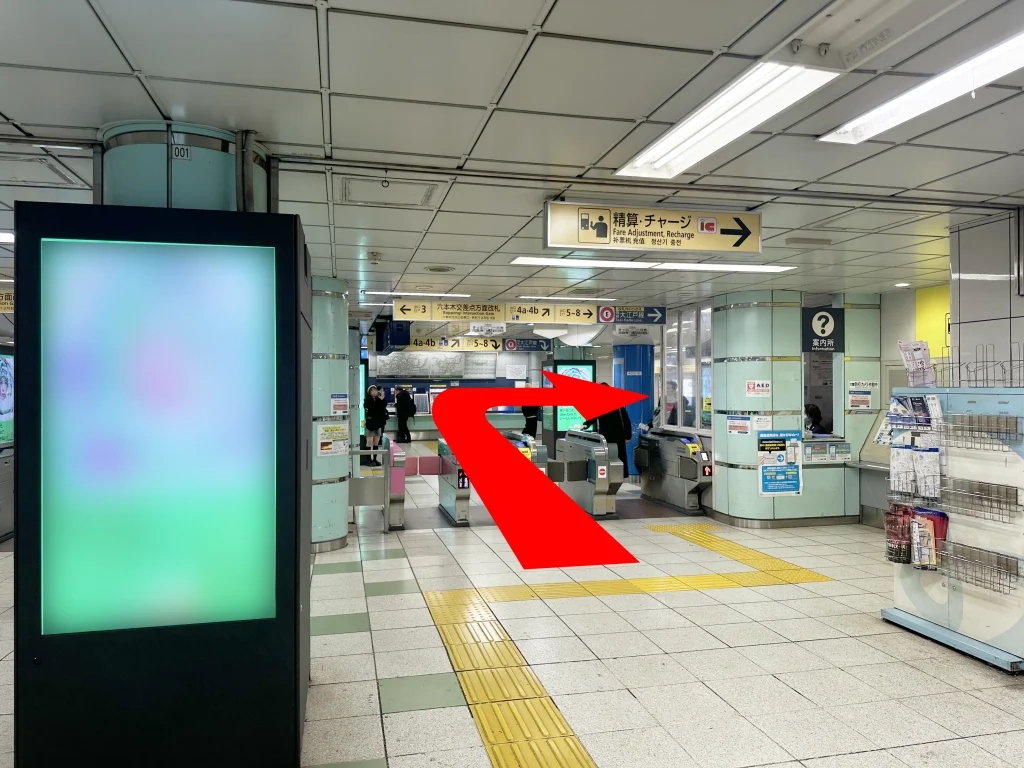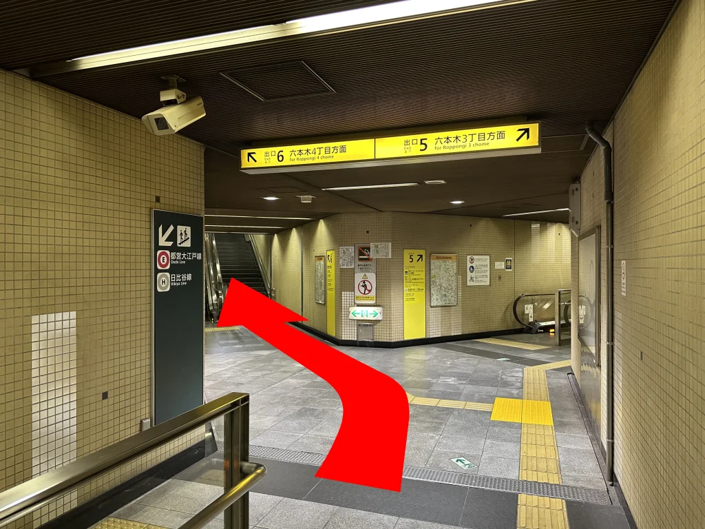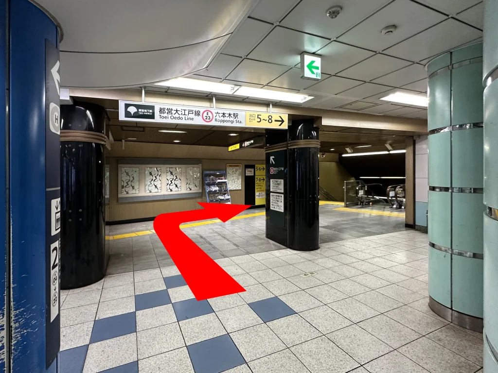 『六本木交差点方面改札』を出て、右へ進みます。