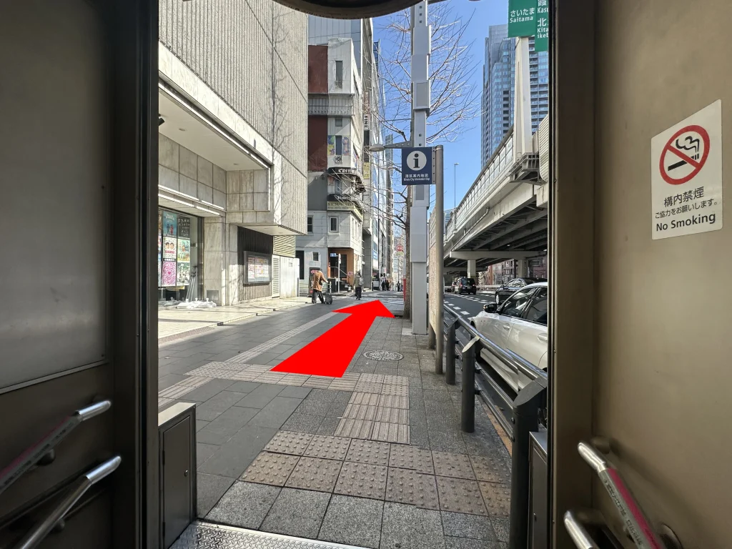 階段を上って地上に出たら真っすぐ進みます。