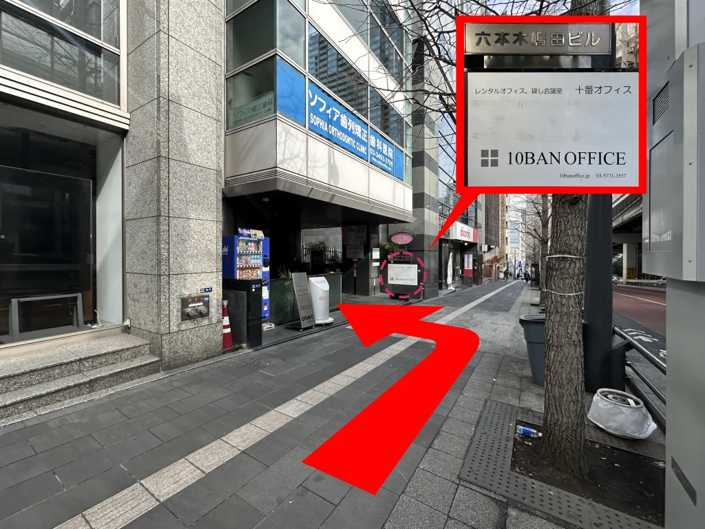 左側に『10BAN OFFICE』と書かれた看板のビルがありますので、ビルの中に入ります。
