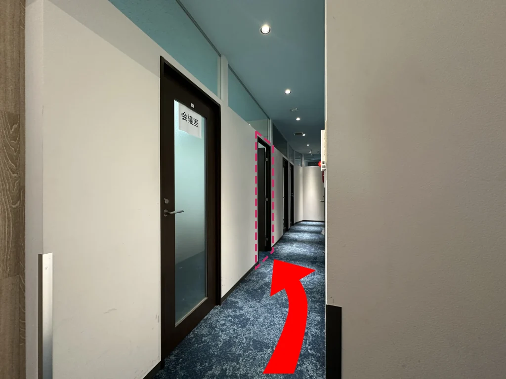 エレベーターを降りたら右へ進んでください。